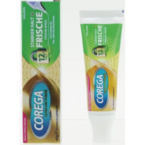 Prețul inițial a fost: 29,99 lei.26,99 leiPrețul curent este: 26,99 lei.Adeziv dentar Corega Ultra Frische Minze 40g
