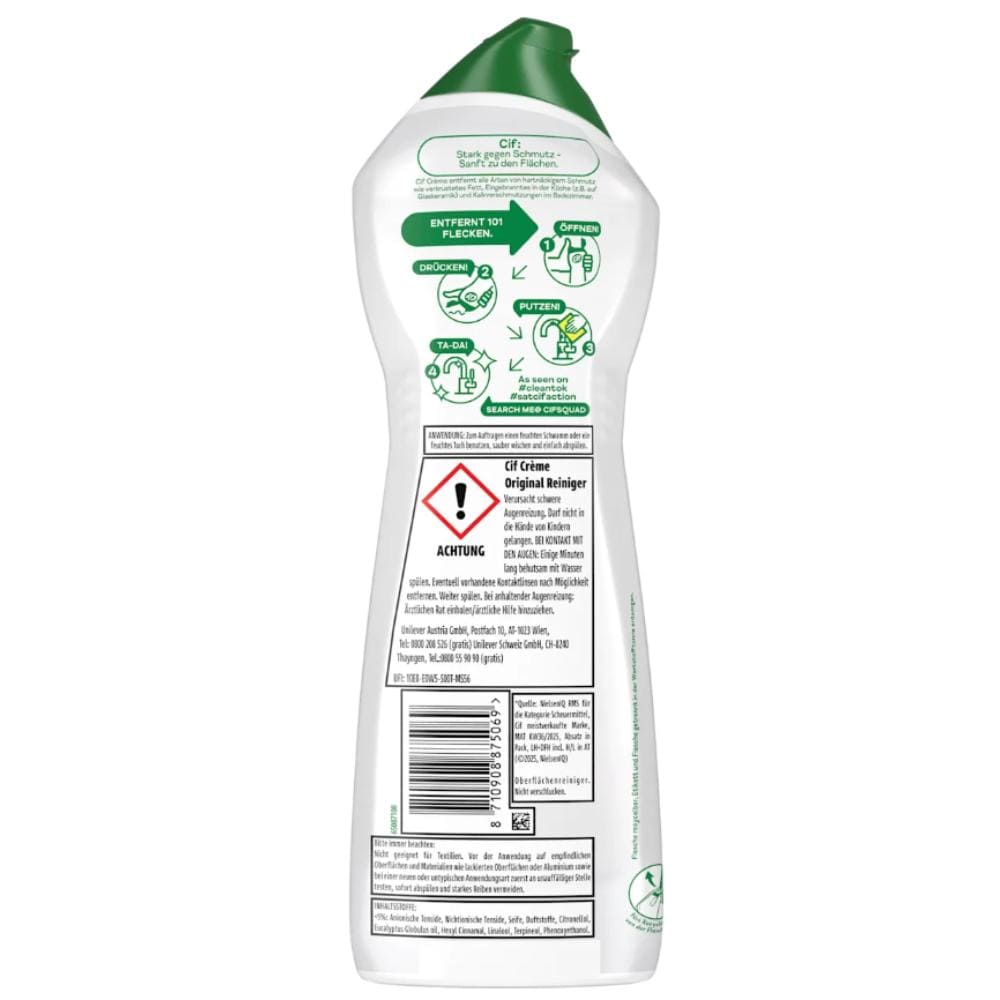 Crema universala Cif Original 750ml. Stergand mai putin cu aceeasi putere Cif Original 750ml indeparteaza murdaria 100%.