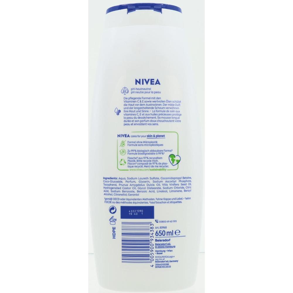 Gel de dus Nivea Creme Soft 650ml. Gel de dus Nivea Creme Soft 650ml cu ulei natural de migdale si parfum usor ofera rasfatul suprem in timpul dusului. Simtiti cum baia crema matasoasa cu ulei de migdale valoros va spumeaza usor pielea. Ofera o senzatie de relaxare si o piele hidratata si ingrijita gratie combinatiei cremoase si formulei care contine un amestec unic de agenti de hidratare si lipide proprii pielii.