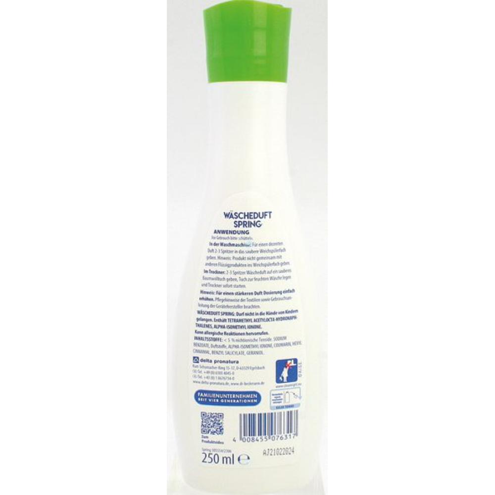 Dr. Beckmann Wascheduft Spring este un parfum concentrat pentru rufe, creat sa ofere un miros placut si de lunga durata direct in timpul spalarii. Nu incarca tesaturile si nu lasa reziduuri, fiind potrivit pentru absolut toate materialele – inclusiv pentru haine sportive, lenjerie, prosoape sau tesaturi sensibile.