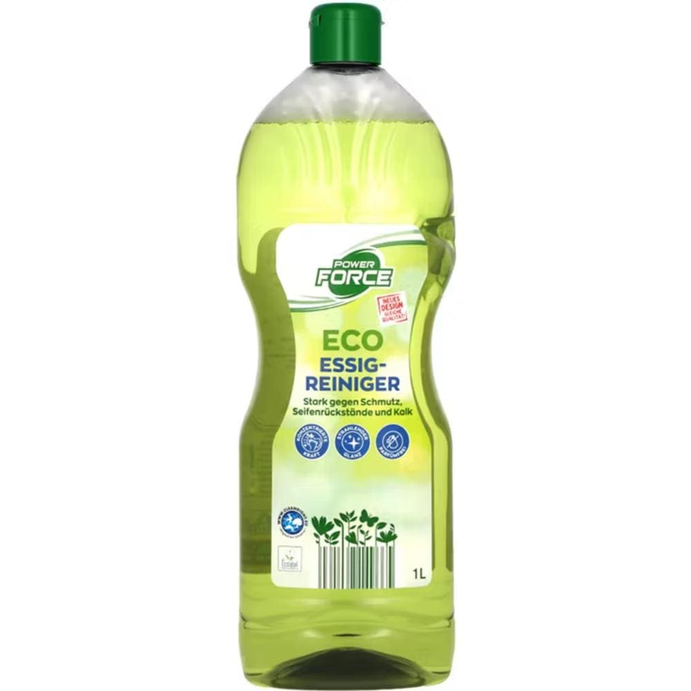 Power Force Eco Essig-Reiniger oferă o soluție eficientă pentru eliminarea impurităților din diverse suprafețe, de la băi și bucătării, până la zonele cu depuneri de calcar. Cu ajutorul acizilor naturali din oțet, acest produs curăță fără efort urmele de săpun și calcar, lăsând suprafețele impecabile și strălucitoare. Datorită formulei sale concentrate, soluția este capabilă să îndepărteze chiar și cele mai persistente pete și depuneri, economisind timp și efort.