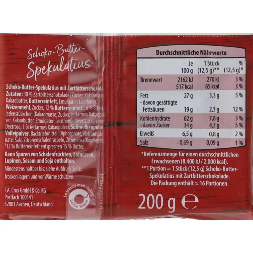 Winter Traum Spekulatius Schoko 200g. Winter Traum Spekulatius Schoko 200g – biscuiti cu 30% ciocolata neagra si6% bucatele de ciocolata neagra.