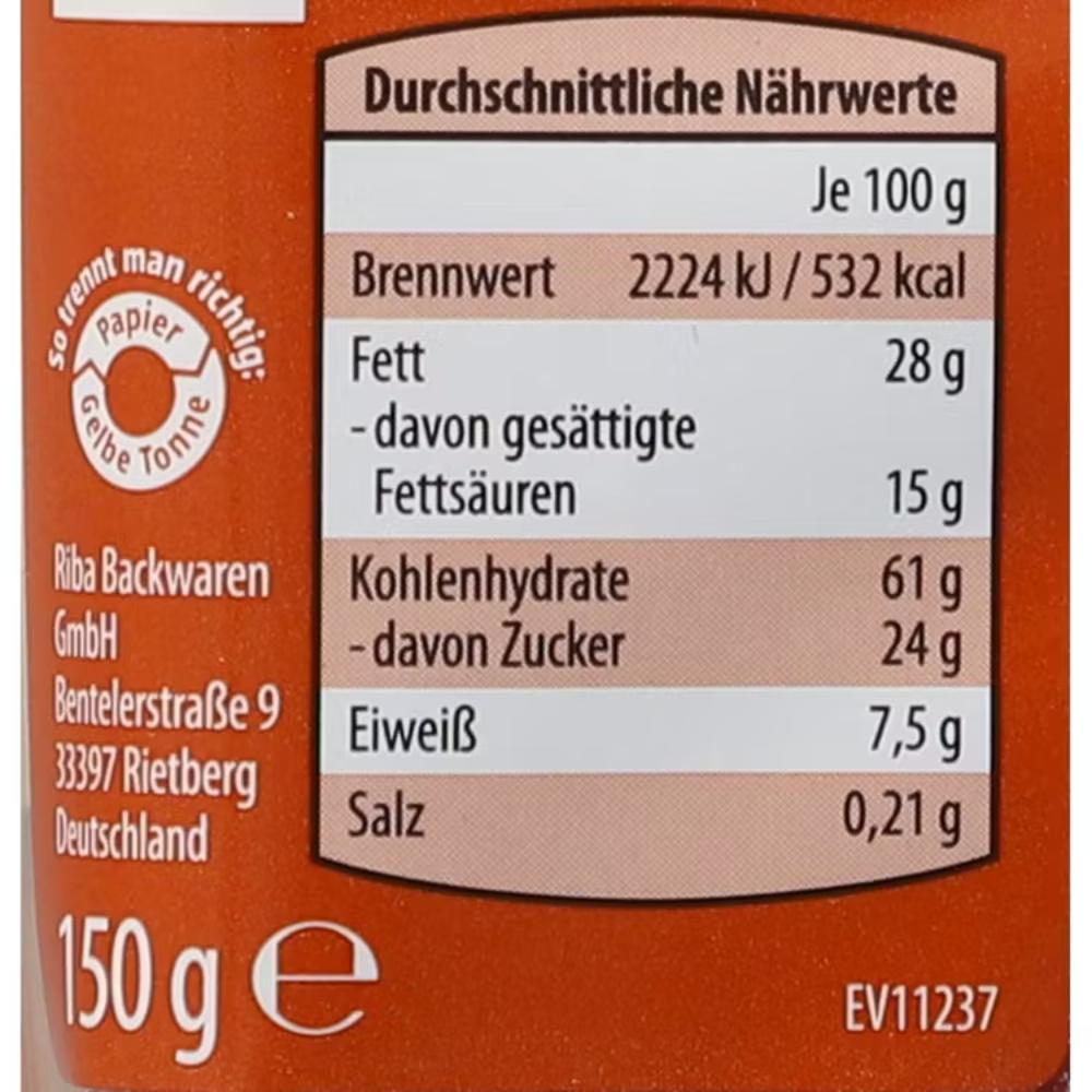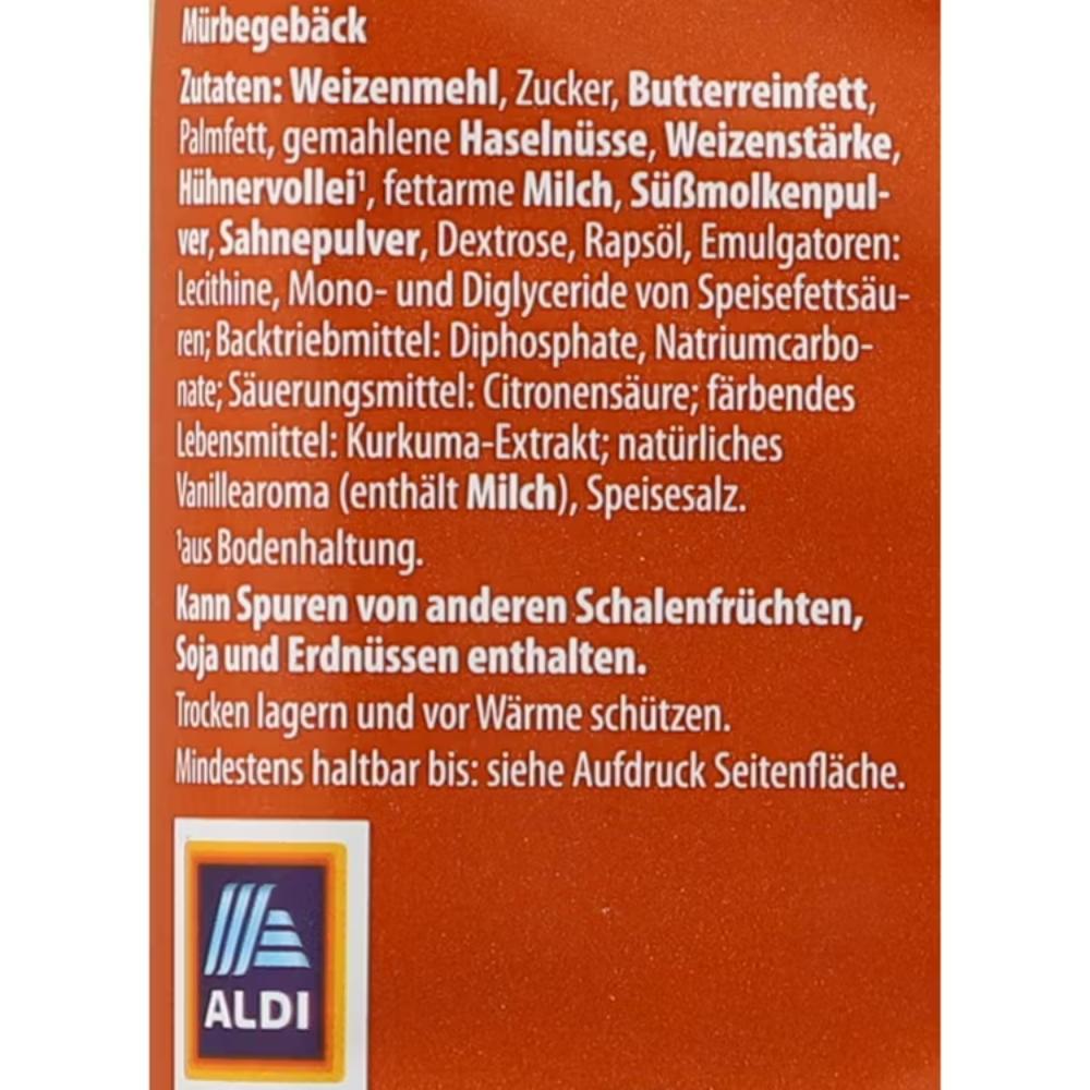 Ingrediente: faina de grau, zahar, grasime din unt, ulei de palmier, ou intreg, umplutura de alune, amidon de grau, proteine din lapte, pudră de zer, praf de frisca, dextroza, ulei de rapita, amidon de porumb, mono- și digliceride ale acizilor grași, emulgator: lecitina soia, acid citric, agenti de crestere: carbonati de sodiu, aroma naturala de vanilie, sare. Poate contine urme de fructe in coaja, soia si arahide.